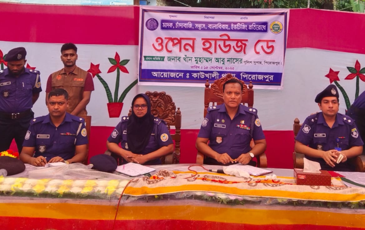 পুলিশের সেবা জনগণের দোরগোড়ায় পৌঁছে দিতে পিরোজপুরের কাউখালীতে থানা পুলিশের উদ্যোগে ‘ওপেন হাউজ ডে’ অনুষ্ঠিত হয়েছে।সোমবার (১৫ সেপ্টেম্বর) সকালে উপজেলার শিয়ালকাঠির চৌরাস্তায় এ অনুষ্ঠান অনুষ্ঠিত হয়। কাউখালী থানার অফিসার ইনচার্জ (ওসি) মোঃ সোলায়মান এর সভাপতিত্বে এ অনুষ্ঠানে প্রধান অতিথি ছিলেন পিরোজপুর পুলিশ সুপার খাঁন মুহাম্মদ আবু নাসের।বিশেষ অতিথি হিসেবে উপস্থিত ছিলেন, অতিরিক্ত পুলিশ সুপার মোহাম্মদ বাইজিদ আহমেদ, কাউখালী - নেছারাবাদ সার্কেলের সহকারী পুলিশ সুপার সাবিহা মেহেবুবা।অনুষ্ঠানে আরও বক্তব্য রাখেন, উপজেলা বিএনপির সহ সভাপতি মোঃ মনিরুজ্জামান মিয়া,উপজেলা ইসলামী আন্দোলনের সভাপতি মোঃ আলী হোসেন, উপজেলা জামায়াতে ইসলামীর সেক্রেটারির অধ্যাপক হুমায়ুন কবির প্রমুখ।প্রধান অতিথি বক্তব্যে পুলিশ সুপার খাঁন মুহাম্মদ আবু নাসের বলেন, পুলিশ জনগণের বন্ধু শত্রু নয়, বন্ধু। পুলিশকে সঠিক তথ্য দিয়ে সহযোগিতা করে সঠিক সেবা গ্রহণ করুন। পুলিশ জনগণের সেবক হয়ে সব সময় পাশে থেকে কাজ করছে, পুলিশের পাশাপাশি সাধারণ জনগণেরও দায়িত্ব মাদক, ইভ টিজিং ও সমাজবিরোধী কর্মকাণ্ডের বিরুদ্ধে রুখে দাঁড়ানো। তিনি আরও বলেন, মাদকের সঙ্গে কোনো আপস নেই। মাদক বিক্রেতা ও সেবনকারীসহ যেকোনো অপরাধীদের ব্যাপারে তথ্য দিতে জনগণের প্রতি আহবান জানান।এ ছাড়া অনুষ্ঠানে স্থানীয় জনপ্রতিনিধি, শিক্ষক, রাজনৈতিক ব্যক্তি, স্হানীয় গণমান্য ব্যক্তি, সংবাদকর্মী ও কমিউনিটি পুলিশিং সহ স্থানীয় বিভিন্ন শ্রেণি-পেশার মানুষ উপস্থিত ছিলেন।
