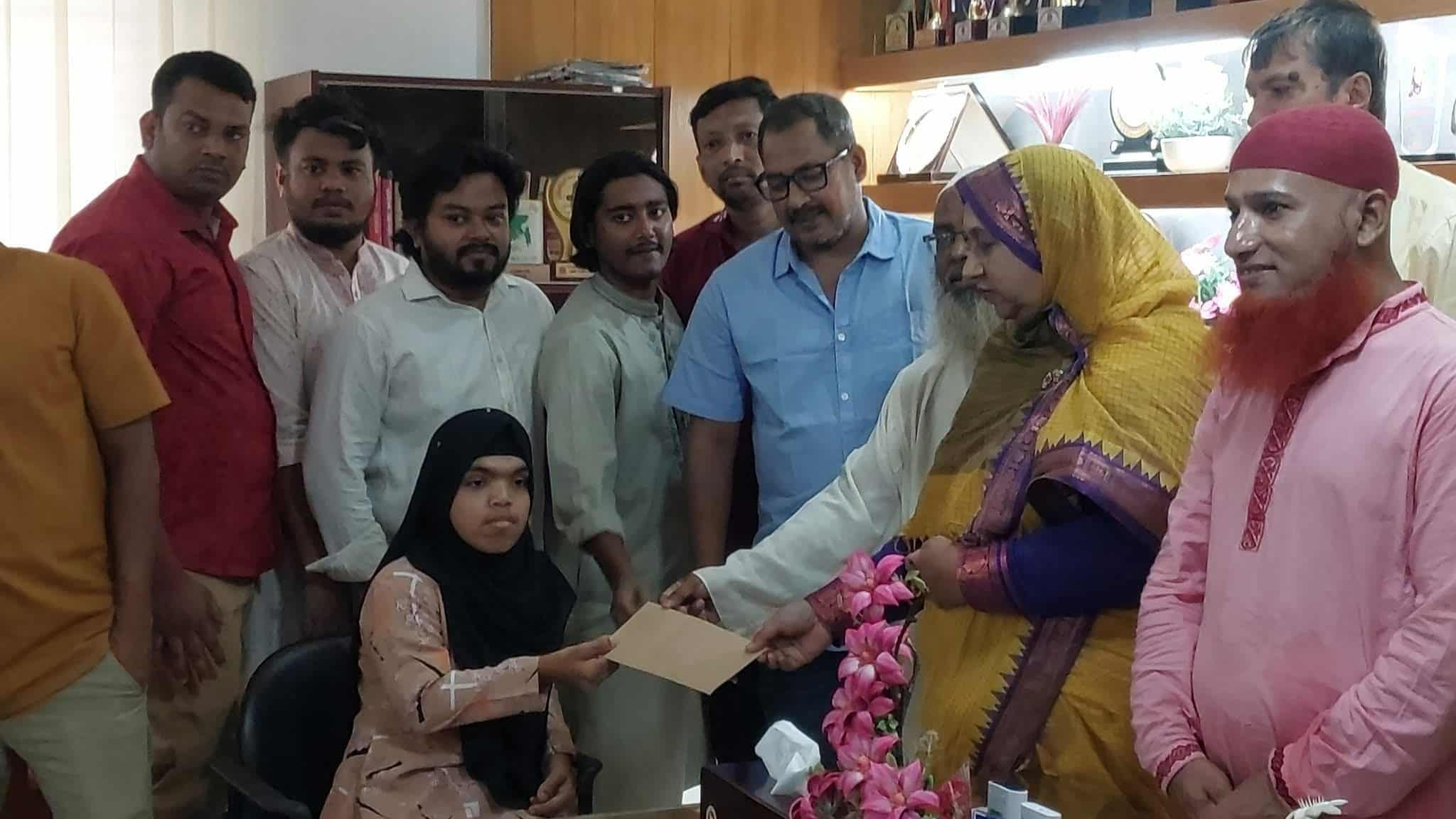 মুন্সিগঞ্জে সরকারি হরগঙ্গা কলেজের অর্নাস ৩ বর্ষের ছাত্রী জুলিয়া শারীরিক প্রতিবন্ধীকতায় জীবনে যাপনে নানা সংকট। তবে এবার সে সংকট নিরসনে পাশে দাড়িয়েছে যুবদল মুন্সিগঞ্জ জেলা যুবদলের মাসুদ রানার সহযোগীতায় স্থানীয় ডি হলিকেয়ার ডায়াগনস্টিক সেন্টারের চাকরি হয়েছে জুলিয়ার। সোমবার সকাল ১১ টায় হরগঙ্গা কলেজের অধ্যক্ষর অফিসে মুন্সীগঞ্জ জেলা যুবদলের মাসুদ রানা ও ডি হলিকেয়ার ডায়াগনস্টিক সেন্টারের মেনেজিং ডিরেক্টর মোঃ আক্তার হোসেনকে চাকুরীর অনুমোদন পত্র তুলে দেয়।এমসয় উপস্থিত ছিলেন সরকারি হরগঙ্গা কলেজের অধ্যক্ষঃ প্রফেসর নাজমুন নাহার, হরগঙ্গা কলেজের সাবেক ভিপি সাহারিয়া সহ যুবদল,ছাত্র দলের নেতা কর্মরা উপস্থিত ছিলেন অধ্যক্ষঃ প্রফেসর নাজমুন নাহার বলেন, যুবদল আজকে অর্নাস ৩য় বর্ষের শিক্ষার্থী শারিরিক প্রতিবন্ধী জুলিয়া আক্তারকে চাকুরীর ব্যবস্থা করে দিয়েছে আমরা চাই ভবিষ্যতে তারা এই রকম মানবিক কাজের মাধ্যমে রাজনীতি করবে।ডি হলিকেয়ার ডায়াগনস্টিক সেন্টারের ম্যানেজিং ডিরেক্টর মোঃ আক্তার হোসেন বলেন, সামাজিক যোগাযোগ মাধ্যমে একটি ভিডিও দেখে যুবদলের স্থগিত সদস্য সচিব মাসুদ রানা ভাই আমাকে এই বিষয়ে জানালে আমি আমার ডায়াগনস্টিক সেন্টার এ চাকরির ব্যবস্থা করি। মোহাম্মদ মাসুদ রানা বলেন, আমি সামাজিক যোগাযোগ মাধ্যমে দেখতে পাই আমাদেরই মুন্সিগঞ্জ হরগঙ্গা কলেজের শারীরিক প্রতিবন্ধী যে কি না টাকার জন্য পড়াশোনা করতে পারছে না তার একটা চাকুরী দরকা তাই যুবদলের পক্ষ থেকে আমি তার জন্য ১৫ হাজার টাকা বেতনের একটি চাকুরীর ব্যবস্থা করি এবং প্রতি মাসে তার যাতায়াত ভাড়ার জন্য ৪ হাজার টাকা করে দেওয়া হবে।চাকুরী বিষয়ে শারীরিক প্রতিবন্ধী জুলিয়া বলেন আমার এই চাকুরী টি খুব প্রয়োজন ছিলো টাকার জন্য পড়াশোনা করতে পারছিলাম না এখন আমি পড়াশোনা করতে পারব। তাই যুবদলের মাসুদ রানা ভাইকে অনেক ধন্যবাদ।প্রসঙ্গত, মোহাম্মদ মাসুদ রানা জেলা যুবদলের সদস্য সচিব হলেও বর্তমানে তার পদ স্থগিত রয়েছে। তবে পূর্বে মত ধারাবাহিকভাবে বিভিন্ন সামাজিক কাজে থেমে নেই তিনি।