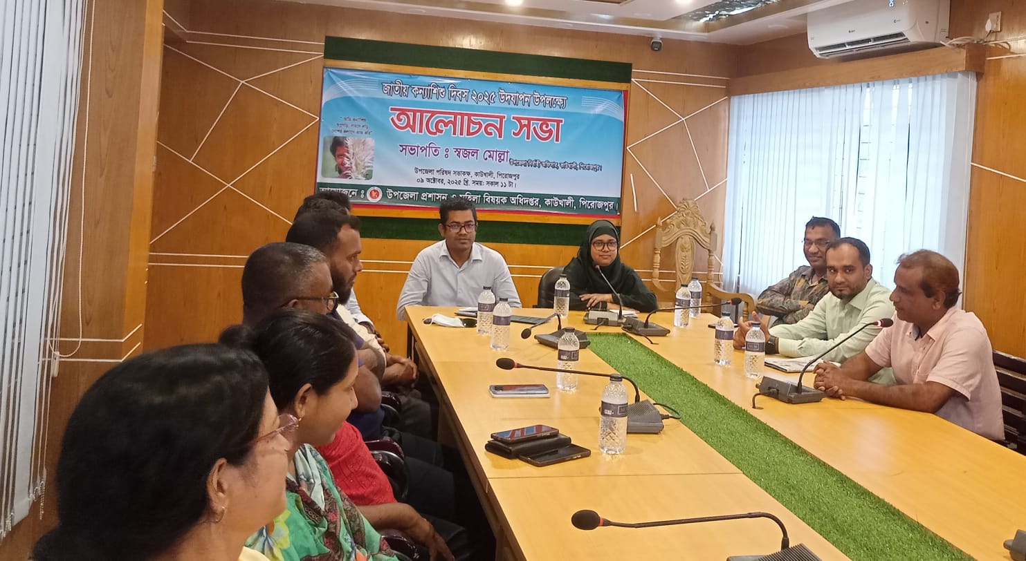 “আমি কন্যা শিশু, স্বপ্ন গড়ি, সাহসে লড়ি, দেশের কল্যাণে কাজ করি”—এই প্রতিপাদ্যকে সামনে রেখে পিরোজপুরের কাউখালীতে জাতীয় কন্যা দিবস পালিত হয়েছে।বৃহস্পতিবার (৯ অক্টোবর) বেলা সাড়ে ১১টায় উপজেলা প্রশাসন ও মহিলা বিষয়ক অধিদপ্তরের উদ্যোগে উপজেলা পরিষদ হলরুমে এক আলোচনা সভা অনুষ্ঠিত হয়।উপজেলা সহকারী কমিশনার (ভূমি) সুদীপ্ত দেবনাথের সভাপতিত্বে সভায় বক্তব্য রাখেন উপজেলা মহিলা বিষয়ক কর্মকর্তা নুরে জান্নাত ফেরদৌসী, উপজেলা কৃষি সম্প্রসারণ অফিসার প্রদীপ কুমার হালদার, উপজেলা সমবায় অফিসার অহিদুজ্জামান খান, উপজেলা সমাজসেবা অফিসার মতিউর রহমান, সাংবাদিক রিয়াদ মাহমুদ সিকদার, কাউখালী থানার এসআই মোঃ মাসুদ, কিশোরী সংগঠক সুজাতা কুণ্ডু প্রমুখ।অনুষ্ঠানে বক্তারা বলেন,কন্যা শিশুদের শিক্ষার সুযোগ বৃদ্ধি, আত্মনির্ভরতা গড়ে তোলা ও সমান অধিকার নিশ্চিত করতে সমাজের সকল স্তরের মানুষকে একযোগে কাজ করতে হবে। তারা আরও বলেন, একটি উন্নত ও মানবিক বাংলাদেশ গঠনে কন্যা শিশুদের ভূমিকা অপরিহার্য।আলোচনা সভায় বিভিন্ন সরকারি দপ্তরের কর্মকর্তা, শিক্ষা প্রতিষ্ঠানের শিক্ষক-শিক্ষার্থী, অভিভাবক, গণমাধ্যমকর্মী ও সুধীজনরা উপস্থিত ছিলেন।