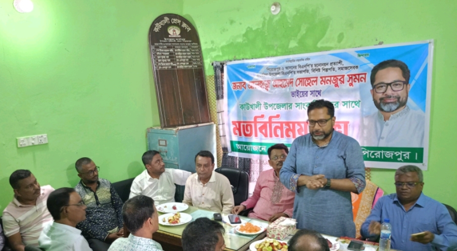 আসন্ন ত্রয়োদশ জাতীয় সংসদ নির্বাচনকে সামনে রেখে পিরোজপুরের কাউখালী প্রেসক্লাবের সাংবাদিকদের সঙ্গে মতবিনিময় সভা করেছেন পিরোজপুর -২ (কাউখালী - ভান্ডারিয়া - নেছারাবাদ) আসনের সংসদ সদস্য পদে মনোনয়ন প্রত্যাশী জেলা বিএনপির সাবেক সহ সভাপতি ও ভান্ডারিয়া উপজেলা বিএনপির সভাপতি আহম্মেদ সোহেল মনজুর সুমন। রবিবার (২ নভেম্বর) দুপুরে কাউখালী প্রেসক্লাব কার্যালয়ে মতবিনিময় সভাটি অনুষ্ঠিত হয়।সভায় আহম্মেদ সোহেল মনজুর সুমন সাংবাদিকদের সঙ্গে নির্বাচনী ভাবনা ও উন্নয়ন পরিকল্পনা তুলে ধরেন।কাউখালী প্রেসক্লাবের সভাপতি এনামুল হক এর সভাপতিত্বে ও সাধারণ সম্পাদক মোঃ তারিকুর রহমান তারেক এর সঞ্চালনায় সভায় বক্তব্য রাখেন, কাউখালী উপজেলা বিএনপির সভাপতি এস এম আহসান কবির, সিনিয়র সহ সভাপতি মোঃ মনিরুজ্জামান মিয়া, সাধারণ সম্পাদক এইচ এম দ্বীন মোহাম্মদ, সাবেক সদস্য সচিব মোঃ শাফিউল আজম দুলাল প্রমুখ। উক্ত মতবিনিময় সভায় বিভিন্ন প্রিন্ট ও ইলেক্ট্রনিক মিডিয়ার সাংবাদিকরা উপস্থিত ছিলেন।