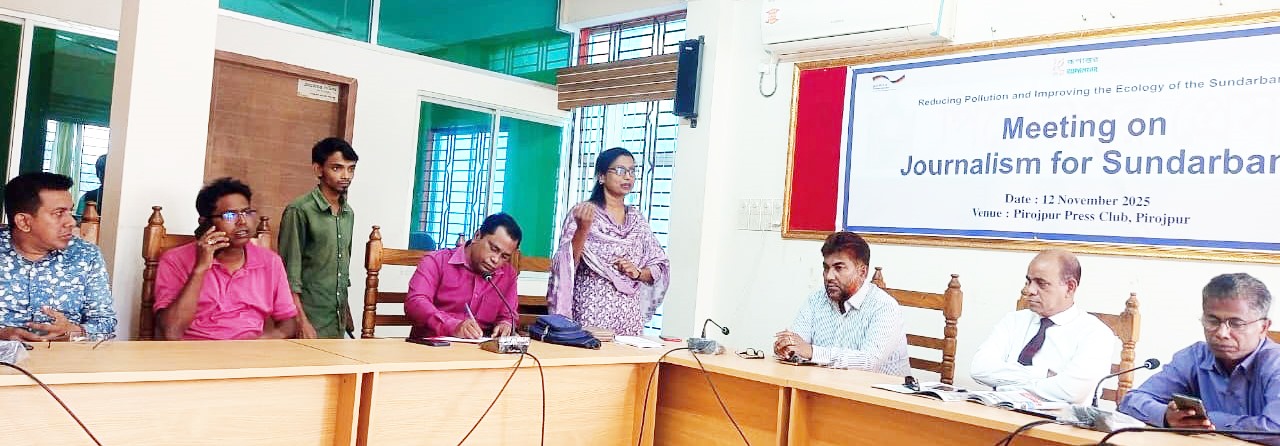 সচেতনতা, নীতি ও গণমাধ্যমের যৌথ প্রয়াসেই সুন্দরবনের ভবিষ্যৎ সুরক্ষিত রাখা সম্ভব-এমন মত প্রকাশ করেছেন বক্তারা। সুন্দরবন সংলগ্ন এলাকায় দূষণ রোধ, প্লাস্টিক বর্জ্য ব্যবস্থাপনা ও জনসচেতনতা বৃদ্ধির লক্ষ্যে ‘জার্নালিজম ফর সুন্দরবন’ কমিটির সভা পিরোজপুরে অনুষ্ঠিত হয়েছে।বুধবার (১২ নভেম্বর) দুপুরে পিরোজপুর প্রেস ক্লাব মিলনায়তনে বেসরকারি উন্নয়ন সংস্থা রূপান্তর এর আয়োজনে এ সভা অনুষ্ঠিত হয়।সভার সভাপতিত্ব করেন ‘জার্নালিজম ফর সুন্দরবন’ এর জেলা আহ্বায়ক ও পিরোজপুর প্রেস ক্লাবের সভাপতি এডভোকেট এস. এম. রেজাউল ইসলাম শামীম। সভা সঞ্চালনা করেন প্রকল্প কর্মকর্তা সাহিদা বানু সোনিয়া। সভায় প্লাস্টিক ও পলিথিন দূষণ প্রতিরোধে করণীয় শীর্ষক বিষয়ে বক্তব্য রাখেন জেলা সদস্য সচিব খেলাফত হোসেন খসরু, যুগ্ম আহ্বায়ক আনোয়ার হোসেন, ফসিউল ইসলাম বাচ্চু, হাসান মামুন, ইমাম হোসেন মাসুদ, খালিদ আবু, জিয়াউল হক, ইয়ুথ ফর সুন্দরবনের নেছারাবাদ আহ্বায়ক সুবর্ণা আক্তার, হাসিবুল ইসলাম ও মাসুম বিল্লাহ প্রমুখ। বক্তারা বলেন, পলিথিন ও প্লাস্টিক ব্যবহারের ফলে পরিবেশ মারাত্মকভাবে ক্ষতিগ্রস্ত হচ্ছে। এসব বর্জ্য গাছপালা, মাটি ও জীববৈচিত্র্যের ওপর নেতিবাচক প্রভাব ফেলছে। আবার এসব পদার্থ পোড়ালে বায়ুদূষণ বাড়ে এবং শ্বাসকষ্টসহ নানা জটিল রোগের সৃষ্টি হয়। তারা আরও বলেন, প্লাস্টিক ও পলিথিন ব্যবহার যতটা সম্ভব কমিয়ে আনা এবং ব্যবহৃত বর্জ্য নির্দিষ্ট স্থানে বা ডাস্টবিনে ফেলার অভ্যাস গড়ে তোলা প্রয়োজন। সভায় প্লাস্টিক ও পলিথিন দূষণ প্রতিরোধে জনসচেতনতা বৃদ্ধির লক্ষ্যে বিভিন্ন কর্মসূচি গ্রহণের সিদ্ধান্ত নেওয়া হয়।