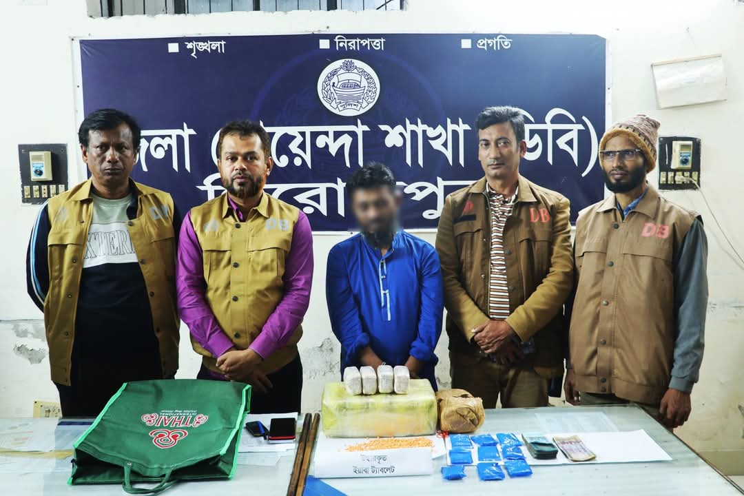 পিরোজপুরে জেলা গোয়েন্দা শাখা (ডিবি) পুলিশের পৃথক অভিযানে ৬০ হাজার ইয়াবা ট্যাবলেটসহ এক মাদক ব্যবসায়ীকে গ্রেফতার করা হয়েছে। শনিবার (১৬ নভেম্বর) দুপুর ১ টার দিকে জেলা পুলিশের গোপন সংবাদের ভিত্তিতে এ অভিযান পরিচালিত হয়। ডিবি সূত্রে জানা গেছে, পুলিশ সুপার পিরোজপুর খান মুহাম্মদ আবু নাসেরের দিকনির্দেশনায় ডিবি পুলিশের অফিসার ইনচার্জ মোঃ আরিফুল ইসলাম ও এসআই (নিরস্ত্র) মোঃ শহিদুল ইসলাম নেতৃত্বে একটি টিম সদর উপজেলার ৫নং ওয়ার্ডের কাপুড়িয়াপট্টি এলাকায় আলহামদুলিল্লাহ মার্কেটের ৫ তলা ভবনের ৪র্থ তলায় অভিযান পরিচালনা করে। এসময় আসামি মোঃ মিজানুর জামান (৪৮) এর শয়নকক্ষের ওয়াড্রোব থেকে একটি কাপড়ের ব্যাগের ভেতরে নীল রঙের জিপার প্যাকেটে বোঝাই অবস্থায় মোট ৬০,০০০ পিস ইয়াবা ট্যাবলেট উদ্ধার করা হয়। অভিযান থেকেই তাকে গ্রেফতার করা হয়। গ্রেফতারকৃত মিজানুর জামানের স্থায়ী ঠিকানা পার্শ্ববর্তী জেলার বাগেরহাটের কচুয়া উপজেলার টেংরাখালী এলাকায় হলেও জাতীয় পরিচয়পত্র অনুযায়ী তার ঠিকানা চট্টগ্রামের সীতাকুণ্ড উপজেলার বড় কুমিরা এলাকায় বলে জানা গেছে। বর্তমানে তিনি কাপুড়িয়াপট্টির আলহামদুলিল্লাহ মার্কেটের ৪র্থ তলায় বসবাস করতেন। ডিবি পুলিশ জানায়, প্রাথমিক জিজ্ঞাসাবাদে মিজানুর দীর্ঘদিন ধরে ইয়াবা ব্যবসার সঙ্গে জড়িত থাকার কথা স্বীকার করেছে। তার বিরুদ্ধে আইনগত ব্যবস্থা নেওয়া হচ্ছে। পিরোজপুর জেলা পুলিশ জানিয়েছে, মাদক নির্মূলে তারা সবসময় জিরো টলারেন্স নীতি অনুসরণ করছে এবং জেলার বিভিন্ন এলাকায় নিয়মিত অভিযান আরও জোরদার করা হবে।