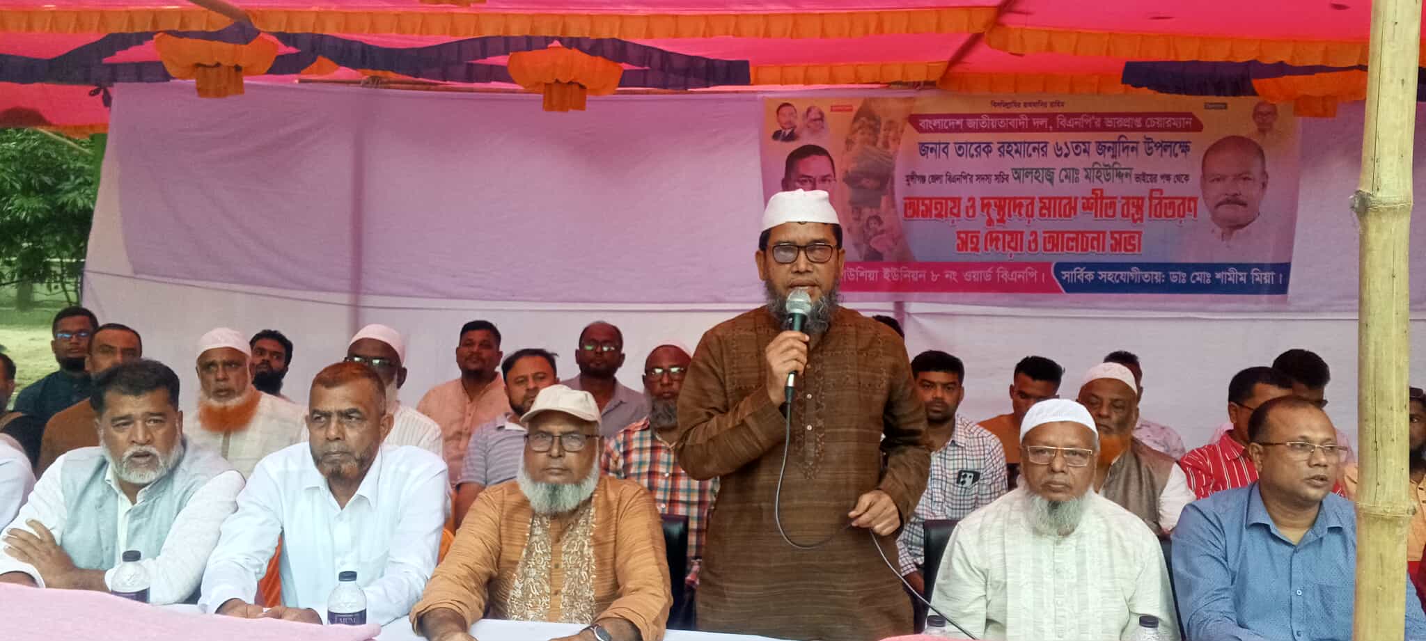 মুন্সিগঞ্জ গজারিয়া উপজেলা জাতীয়তাবাদী দল বিএনপির ভারপ্রাপ্ত চেয়ারম্যান তারেক রহমানের ৬১তম জন্মদিন উপলক্ষ্যে জেলা বিএনপির সদস্য সচিব মো:মহিউদ্দিন আহমেদ এর পক্ষ থেকে অসহায় ও দুস্থদের মাঝে শীতবস্ত্র বিতরণ সভা অনুষ্ঠিত। বৃহস্পতিবার (২০নভেম্বর) বিকাল ৪ঘটিকায় উপজেলার বাউশিয়া ইউনিয়ন এর ফরাজীকান্দী কেন্দ্রীয় ঈদগাঁও মাঠ প্রাঙ্গণে এই অনুষ্ঠান অনুষ্ঠিত হয়েছে।অনুষ্ঠানে প্রধান অতিথি হিসেবে উপস্থিত ছিলেন জেলা বিএনপির আহবায়ক কমিটির সদস্যকেন্দ্রীয় যুবদলের সাবেক সহ সভাপতি আলহাজ্ব মুহাম্মদ মজিবুর রহমান,বিশিষ্ট চিকিৎসক মো:শামীম মিয়ার সার্বিক সহযোগিতায় অনুষ্ঠানে অন্যান্যদের মাঝে উপস্থিত ছিলেন জেলা বিএনপির আহবায়ক কমিটির সদস্য আহসান উল্লাহ,বোরহান উদ্দিন ভূঁইয়া,জেলা ছাত্রদলের সাবেক সহ সভাপতি আমিনুল ইসলাম জসীম, কেন্দ্রীয় ছাত্রদলের যুগ্ম সম্পাদক বায়জিদ শ্রাবণ, উপজেলা বিএনপির যুগ্ম আহবায়ক শফিকুর রহমান শিকদার, উপজেলা যুবদলের আহবায়ক জিএস ওয়াহিদুজ্জামান, উপজেলা শ্রমিক দলের সভাপতি জাকারিয়া ভূঁইয়া,সাবেক জেলা ছাত্রদলের সহ সা:সম্পাদক মো:জসীম প্রমুখ।বাউশিয়া ইউনিয়ন বিএনপি'র আহবায়ক মো:হাসমত আলী তাঁতীর সভাপতিত্বে ও উপজেলা বিএনপির যুগ্ম আহবায়ক ইঞ্জি:মুকবুল আহমেদ রতনের সঞ্চালনায় আরও উপস্থিত ছিলেন বিভিন্ন ইউনিয়ন বিএনপি আহবায়ক,সদস্য সচিব,যুগ্ম আহবায়ক বৃন্দসহ বিএনপি ও অঙসংগঠনের বিভিন্ন স্তরের নেতৃবৃন্দ