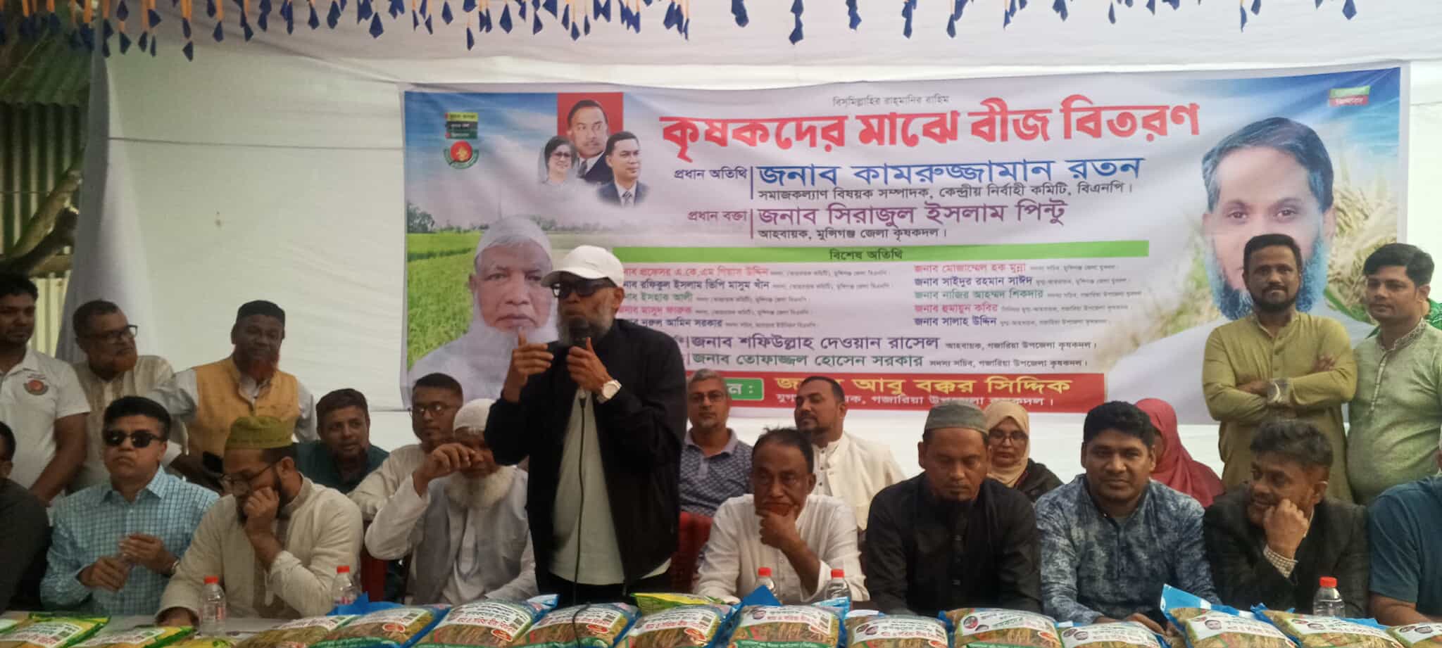মুন্সীগঞ্জে গজারিয়া উপজেলা কৃষকদলের উদ্যোগে কৃষকদের মাঝে কৃষি শস্য বিতরণ অনুষ্ঠিত হয়েছে। গজারিয়া উপজেলার ভবেরচর ইউনিয়নের লক্ষ্মীপুর এলাকায় উপজেলা স্বাস্থ্য কমপ্লেক্সের পাশে এ শস্য বিতরণ অনুষ্ঠান সম্পন্ন হয়।এ সময় গজারিয়ার ৮টি ইউনিয়নের কৃষকদের মাঝে সরিষা ও ধানের বীজ বিতরণ করা হয় নেতাকর্মীদের মাধ্যমে।অনুষ্ঠানে সভাপতিত্ব করেন গজারিয়া উপজেলা কৃষকদলের আহ্বায়ক রাসেল দেওয়ান এবং সঞ্চালনায় ছিলেন সদস্য সচিব তোফাজ্জল হোসেন সরকার।অনুষ্ঠানের প্রধান অতিথি হিসেবে উপস্থিত ছিলেন কেন্দ্রীয় বিএনপির সমাজকল্যাণ বিষয়ক সম্পাদক কামরুজ্জামান রতন।প্রধান বক্তা ছিলেন জেলা কৃষকদলের সভাপতি সিরাজুল ইসলাম পিন্টু। এছাড়াও উপস্থিত ছিলেন কেন্দ্রীয় কৃষকদলের সহ-ক্রিড়া বিষয়ক সম্পাদক এডভোকেট জাহাঙ্গীর বিশেষ অতিথি হিসেবে উপস্থিত ছিলেন, জেলা বিএনপি আহ্বায়ক কমিটির সদস্য মাসুদ ফারুক,প্রফেসর গিয়াস উদ্দিন,জেলা যুবদলের আহ্বায়ক কমিটির সদস্য সচিব মোজাম্মেল হক মুন্না,জেলা ছাত্রদলের আহ্বায়ক কমিটির সদস্য সচিব জাহিদুর রহমান জাহিদ,উপজেলা যুবদলের আহ্বায়ক কমিটির সদস্য সচিব নাজির সিকদার উপজেলা কৃষকদলের যুগ্ম আহ্বায়ক হুমায়ূন কবির বেপারি ও মোঃ সালাউদ্দিন।উপজেলা ছাত্রদলের আহ্বায়ক মিজানুর রহমান মিজান,উপজেলা মহিলা দলের সভাপতি রাজিয়া সুলতানা আইভি, অন্যান্যদের মধ্যে আরো উপস্থিত ছিলেন উপজেলা যুবদলের সাবেক সাধারণ সম্পাদক তপন চৌধুরী, উপজেলা যুবদলের সিনিয়র যুগ্ম আহ্বায়ক জালাল উদ্দীন রুমি, যুগ্ম আহ্বায়ক আক্তারুজ্জামান, ভবেরচর ইউনিয়ন বিএনপির সাধারণ সম্পাদক নুরুল আমিন সরকার,টেংগারচর ইউনিয়ন কৃষকদলের সভাপতি আসিফ ইকবাল লিটন, সিনিয়র সহ-সভাপতি কাঞ্চন মিয়াজী প্রমুখ।অনুষ্ঠানটি আয়োজন করেন উপজেলা কৃষকদলের যুগ্ম আহ্বায়ক আবু বক্কর সিদ্দিক।এই শস্য বিতরণ কার্যক্রমকে স্থানীয় কৃষকরা স্বাগত জানান এবং এমন উদ্যোগ ভবিষ্যতেও চলমান রাখার আহ্বান জানান।