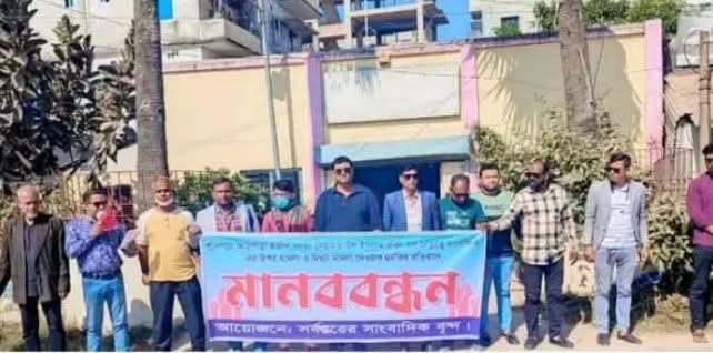 মুন্সীগঞ্জের শ্রীনগরে মব সৃষ্টি করে শ্রীনগর উপজেলা প্রেসক্লাবের সহ সভাপতি সাংবাদিক ফরহাদ হোসেন জনির ওপর হত্যাচেষ্টা ও মিথ্যা চাঁদাবাজির অভিযোগ আনার প্রতিবাদে মানববন্ধন অনুষ্ঠিত হয়েছে।শ্রীনগর প্রেসক্লাবের সামনে শ্রীনগরের সর্বস্তরের সাংবাদিকবৃন্দের উদ্যোগে এ মানববন্ধন অনুষ্ঠিত হয়।মানববন্ধনে বক্তারা বলেন,একজন সাংবাদিককে লক্ষ্য করে পরিকল্পিতভাবে মিথ্যে অভিযোগ সৃষ্টি করা হয়েছে,যা শুধু একজন ব্যক্তিকে নয় পুরো গণমাধ্যমকেই হেয় প্রতিপন্ন করার চেষ্টা।তারা আরও বলেন,সাংবাদিকদের ওপর যেকোনো ধরনের নিপীড়ন গণতন্ত্রের জন্য হুমকি।সত্য ও নিরপেক্ষ সংবাদ প্রকাশে বাধা দিতে ষড়যন্ত্রমূলক মিথ্যা মামলার আশ্রয় নেওয়া খুবই দুঃখজনক।বক্তারা উক্ত ঘটনার সঙ্গে জড়িতদের দ্রুত সুষ্ঠু তদন্তের মাধ্যমে আইনের আওতায় আনার দাবি জানান।পাশাপাশি সাংবাদিকদের নিরাপত্তা নিশ্চিত করতে প্রশাসনের প্রতি আহ্বান জানানো হয়। মানববন্ধনে উপস্থিত ছিলেন,মুন্সীগঞ্জ জেলা প্রেসক্লাবের সভাপতি মোঃ সাইফুল ইসলাম কামাল, শ্রীনগর প্রেসক্লাবের সভাপতি আরিফ হোসেন টিপু ও সাধারণ সম্পাদক আরিফুল ইসলাম শ্যামল,সহ সভাপতি শাজাহান খান,প্রচার সম্পাদক নাজমুল খান সুজন, কার্যকরী সদস্য উজ্জ্বল দত্ত,শ্রীনগর উপজেলা প্রেসক্লাবের সভাপতি মোঃ মোফাজ্জল হোসেন ও সাধারণ সম্পাদক শেখ আছলাম, বাংলাদেশ অনলাইন সাংবাদিক কল্যান ইউনিয়ন(বসকো) এর মহাসচিব ফয়সাল হাওলাদার, সাংবাদিক নির্যাতন প্রতিরোধ সেলের কেন্দ্রীয় কমিটির কেন্দ্রীয় কমিটির পরিচালক মোঃ আনিসুর রহমান নিলয়, বাংলাদেশ মফস্বল সাংবাদিক ফোরাম এর কেন্দ্রীয় নির্বাহী কমিটির সহ সাংগঠনিক সম্পাদক ফৌজি হাসান খান রিকু,মুন্সীগঞ্জ জেলা সাংবাদিক কল্যাণ সমিতির সভাপতি নজরুল ইসলাম ও সাধারণ সম্পাদক আব্দুল কাইউম মাইজভান্ডারি, বিক্রমপুর টেলিভিশন জার্নালিস্ট এসোসিয়েশন এর দপ্তর সম্পাদক মেহেদী সুমন,লৌহজং উপজেলা প্রেসক্লাবের সভাপতি ও মুন্সীগঞ্জ জেলা সাংবাদিক কল্যান সমিতির সিনিয়র সহ-সভাপতি আবু নাসের লিমন,সাধারণ সম্পাদক তাজুল ইসলাম রাকিব, মুন্সীগঞ্জ জেলা প্রেসক্লাবের প্রচার সম্পাদক মোস্তাকিম আহমেদ আলিফ,মুন্সীগঞ্জ জেলা ন্যাশনাল হিউম্যান রাইটস ক্রাইম রিপোর্টার ফাউন্ডেশন এর সাংগঠনিক সম্পাদক আসাদুজ্জামান নবিন,পিংকি রহমান,উন্মোচন টিভি মুন্সীগঞ্জ জেলা প্রতিনিধি ও জাতীয় দৈনিক রুপবানি’র মোহাম্মদ ছিবগাতুল্লাহ,শ্রীনগর উপজেলা প্রেসক্লাবের সদস্য আনোয়ার হোসেন,সাংগঠনিক সম্পাদক তরিকুল ইসলাম,কার্যকরি সদস্য জাকির লস্কর,কোষাধ্যক্ষ মান্নান সিদ্দিকী,আমার দেশ পত্রিকার শ্রীনগর প্রতিনিধি অপু হোসেন লোকমান,সাফিন আহমেদ, দৈনিক বাংলার বার্তার প্রতিনিধ