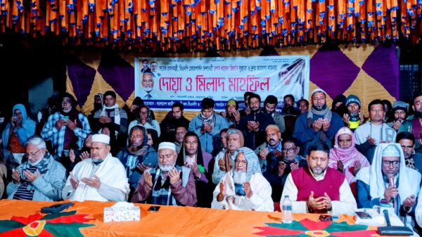 বিএনপি চেয়ারপার্সন ও সাবেক প্রধানমন্ত্রী বেগম খালেদা জিয়ার সুস্থতা ও রোগ মুক্তি কামনায় ভেড়ামারা উপজেলার ১২ মাইল স্থানীয় বিএনপির উদ্যোগে আজ বুধবার বিকেলে দাখিল মাদ্রাসা সংলগ্ন স্থানে দোয়া ও মিলাদ মাহফিল অনুষ্ঠিত হয়। প্রধান অতিথি হিসেবে উপস্থিত ছিলেন- কুষ্টিয়া ২ (ভেড়ামারা মিরপুর) আসনের সাবেক সংসদ সদস্য, জেলা বিএনপির সাবেক সভাপতি ও বিএনপির জাতীয় নির্বাহী কমিটির সদস্য আলহাজ্ব অধ্যাপক শহীদুল ইসলাম। দোয়া মাহফিল অনুষ্ঠানে বিশেষ অতিথি হিসেবে উপস্থিত ছিলেন ভেড়ামারা উপজেলা বিএনপির আহবায়ক, উপজেলা পরিষদের সাবেক চেয়ারম্যান ও পৌরসভার সাবেক মেয়র এ্যাড. তৌহিদুল ইসলাম আলম। এসময় উপস্থিত ছিলেন ভেড়ামারা পৌর শাখা বিএনপির সভাপতি আবু দাউদ, সাধারণ সম্পাদক শফিকুল ইসলাম ডাবলু, উপজেলা বিএনপির যুগ্ম আহবায়ক জানবার হোসেন, উপজেলা বিএনপির যুগ্ম আহবায়ক শফিকুল ইসলাম বিশু, ইছাহক, বাহিরচর ইউনিয়ন বিএনপির সভাপতি জাহিদুর রহমান লাভলু, সাধারণ সম্পাদক আব্দুর রাজ্জাক, বিএনপি নেতা সাইফুল ইসলাম রোকন,মতিউর রহমান দুলাল সহ বিএনপি নেতৃবৃন্দ। দোয়া পরিচালনা করেন ফুরফুরা কেন্দ্রীয় মুবালীগ মাওলানা খান মোঃ গোলাম মোস্তফা চাঁদ।পাকশী মাদ্রাসার মুহাদ্দিস মুফতি নুরুজ্জামান।