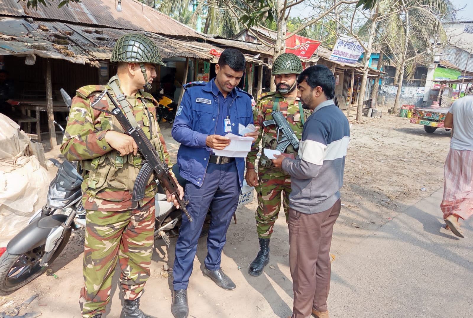 পিরোজপুরের কাউখালী উপজেলায় সেনাবাহিনী ও পুলিশের যৌথ উদ্যোগে ট্রাফিক আইন বাস্তবায়নে চেকপোস্ট পরিচালনা করা হয়েছে। এসময় ট্রাফিক আইন লঙ্ঘনের দায়ে চারটি মামলায় ২৫ হাজার টাকা জরিমানা আদায় করা হয়েছে। এসময় বৈধ কাগজপত্র না থাকায় একটি মোটরসাইকেল জব্দ করা হয়। রবিবার (২৫ জানুয়ারি) সকাল থেকে শ্রীগু সংঘ আশ্রম গেটসহ শহরের বিভিন্ন গুরুত্বপূর্ণ সড়কে সেনাবাহিনীর কাউখালীর অস্থায়ী ক্যাম্পের সার্জেন্ট জহির এর নেতৃত্বে কাউখালী থানা পুলিশের সহযোগিতায় এ যৌথ চেকপোস্ট পরিচালনা করা হয়। যৌথ বাহিনীর সূত্রে জানা যায়, ট্রাফিক আইন লঙ্ঘনের দায়ে মোটরসাইকেলের বৈধ কাগজপত্র না থাকায় এবং ট্রাফিক নিয়ম ভঙ্গের দায়ে চারটি মামলায় ২৫ হাজার টাকা জরিমানা করা হয়। এছাড়া একটি মোটরসাইকেল জব্দ করা হয়েছে। সড়কে শৃঙ্খলা বজায় রাখা, অবৈধ যান চলাচল রোধ এবং দুর্ঘটনা কমানোর লক্ষ্যে যৌথ বাহিনীর এ ধরনের অভিযান নিয়মিতভাবে অব্যাহত থাকবে।