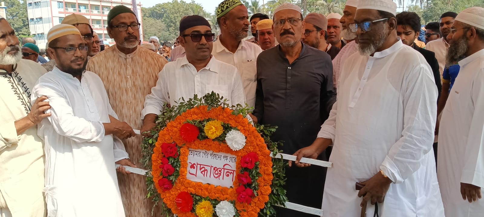 কুষ্টিয়ার ভেড়ামারা পৌরসভার সাবেক মেয়র ও উপজেলা আওয়ামী লীগের সাধারণ সম্পাদক আলহাজ্ব শামীমুল ইসলাম ছানার জানাজা ও দাফন সম্পন্ন হয়েছে।রোববার বেলা ২টায় ভেড়ামারা সরকারি কলেজ মাঠে অনুষ্ঠিত জানাজায় দল-মত নির্বিশেষে সর্বস্তরের মানুষের উপচে পড়া ভিড় লক্ষ্য করা যায়। জানাজা শেষে ফারাকপুর গোরস্থানে তাঁর দাফন সম্পন্ন হয়। শনিবার সন্ধ্যা ৭টা ৪৫ মিনিটে ঢাকায় চিকিৎসাধীন অবস্থায় শেষ নিঃশ্বাস ত্যাগ করেন শামীমুল ইসলাম ছানা। পরদিন মরদেহ ভেড়ামারায় পৌঁছালে এলাকায় নেমে আসে শোকের ছায়া, সৃষ্টি হয় শোকাতুর পরিবেশ। জানাজা পূর্ব সমাবেশে বক্তারা তাঁর বর্ণাঢ্য রাজনৈতিক ও সামাজিক জীবনের স্মৃতিচারণ করেন।তাঁদের মতে, তিনি শুধু জনপ্রতিনিধি নন, ছিলেন সদালাপী, ধর্মপ্রাণ ও পরহেজগার একজন মানুষ।জানাজায় অংশ নেওয়া সাধারণ মানুষ ও শুভাকাঙ্ক্ষীরাও তাঁর পরোপকারিতা ও মানবিক গুণাবলির প্রশংসা করেন। জানাজা পূর্ব সমাবেশে বক্তব্য রাখেন ভেড়ামারা পৌরসভার সাবেক মেয়র ও উপজেলা বিএনপির আহ্বায়ক অ্যাডভোকেট তৌহিদুল ইসলাম আলম, সাবেক উপজেলা চেয়ারম্যান আলহাজ্ব আক্তারুজ্জামান মিঠু, জাসদ নেতা ও মরহুমের রাজনৈতিক গুরু আলহাজ্ব আব্দুল আলীম স্বপন, উপজেলা বিএনপির সদস্য সচিব শাজাহান আলী, জেলা জামায়াতের প্রশিক্ষণ সম্পাদক ড. অধ্যাপক মো. নুরুল আমিন জসিম এবং মরহুমের বড় ভাই অ্যাডভোকেট সাইফুল ইসলাম রানা। বক্তারা বলেন, শামীমুল ইসলাম ছানার মৃত্যুতে ভেড়ামারার রাজনীতি ও জনসেবায় এক অপূরণীয় শূন্যতার সৃষ্টি হয়েছে। শোকসন্তপ্ত পরিবারের প্রতি গভীর সমবেদনা জানিয়ে তাঁরা মরহুমের আত্মার মাগফিরাত কামনা করেন। পরিবারের পক্ষ থেকেও সকলের কাছে দোয়া ও ক্ষমা প্রার্থনা করা হয়েছে। ভেড়ামারার উন্নয়ন ও মানুষের সেবায় দু’বার নির্বাচিত এই মেয়রের অবদান এলাকাবাসী গভীর শ্রদ্ধার সঙ্গে স্মরণ করছেন।