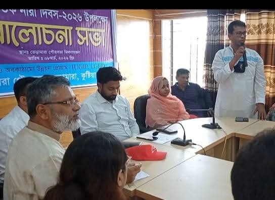 কুষ্টিয়া ভেড়ামারায় জাঁকজমকপূর্ণ ভাবে পালন হলো আন্তর্জাতিক নারী দিবস "আজকের পদক্ষেপ আগামীর ন্যায় বিচার, সুরক্ষিত হোক নারী ও কন্যার অধিকার" — এই বলিষ্ঠ প্রতিপাদ্যকে সামনে রেখে কুষ্টিয়ার ভেড়ামারায় যথাযোগ্য মর্যাদায় পালিত হলো আন্তর্জাতিক নারী দিবস।ভেড়ামারা উপজেলা প্রশাসন, মহিলা বিষয়ক অধিদপ্তর, জাতীয় মহিলা সংস্থা এবং ভেড়ামারা পৌরসভার যৌথ উদ্যোগে আয়োজিত এই অনুষ্ঠানটি ছিল নারী অধিকার আদায়ের এক মিলনমেলা। অনুষ্ঠানের সারসংক্ষেপ অনুষ্ঠানে সভাপতিত্ব করেন এবং নারী অধিকার বাস্তবায়নে দিকনির্দেশনামূলক বক্তব্য রাখেন ভেড়ামারা উপজেলা নির্বাহী অফিসার রফিকুল ইসলাম। তাঁর বক্তব্যে উঠে আসে সমাজের প্রতিটি স্তরে নারীর নিরাপত্তা ও সমঅধিকার নিশ্চিত করার আহ্বান।সঞ্চালনা: পুরো অনুষ্ঠানটি অত্যন্ত নান্দনিকভাবে সঞ্চালনা করেন গল্পকার, কবি ও সংগঠক এবং জাতীয় মহিলা সংস্থার দায়িত্বপ্রাপ্ত কর্মকর্তা আসমান আলী।আলোচনায় অংশ নেন ডাঃ গাজী আশিক বাহার (সহকারী কমিশনার-ভূমি, ভেড়ামারা) জান্নাতুল ফেরদৌস (উপজেলা মহিলা বিষয়ক কর্মকর্তা) স্বাগত বক্তব্য মোঃ ফারুক আহমেদ (উপজেলা মাধ্যমিক শিক্ষা অফিসার) শেখ মোঃ নওশের আলী (উপজেলা যুব উন্নয়ন কর্মকর্তা) নাজবিন আখতার (উপজেলা সমবায় কর্মকর্তা) মর্জিনা খাতুন (আইসিটি কর্মকর্তা)মনোজ কুমার ইন্দ্র (উপজেলা দারিদ্র্য বিমোচন কর্মকর্তা)প্রশিক্ষণার্থী: কামরুন্নাহার ও মিথিলা ফারজানা।উপস্থিত ছিলেন জাতীয় মহিলা সংস্থার অফিস সহকারী আব্দুল বারী, ট্রেড প্রশিক্ষক শাহানারা বেগম ও অফিস সহায়ক আকবর হোসেনসহ অন্যান্য ব্যক্তিবর্গ।অনুষ্ঠানে বক্তারা তাঁদের আলোচনায় নারীর প্রতি সহিংসতা প্রতিরোধে এবং নারীদের সামাজিক ও অর্থনৈতিকভাবে স্বাবলম্বী করতে সামাজিক প্রতিরোধ গড়ে তোলার ওপর বিশেষ গুরুত্বারোপ করেন। তাঁরা বলেন, আজকের সচেতন পদক্ষেপই আগামী প্রজন্মের নারীদের জন্য একটি নিরাপদ ও ন্যায়বিচারপূর্ণ সমাজ নিশ্চিত করবে।আসুন, আমরা সবাই মিলে নারীর অধিকার সুরক্ষায় এবং বৈষম্যমুক্ত সমাজ গড়তে ঐক্যবদ্ধ হই।